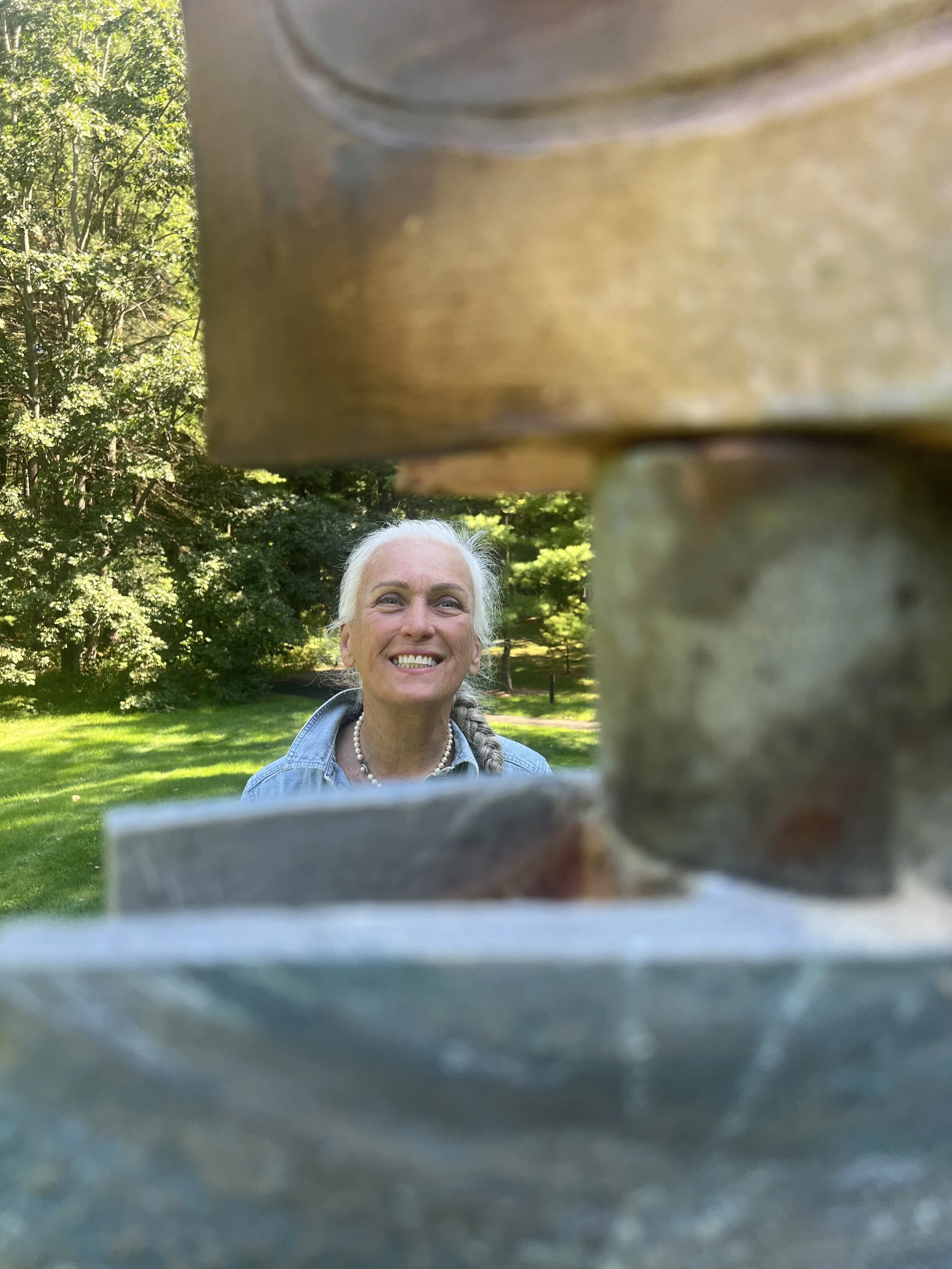 Another special moment was visiting Helen’s large-scale installation “Nature, Energy, & Reflection” at Dow Gardens. It was a beautiful sunny day, and we walked the gardens together, discovering her totemic sculptures in situ. Having helped install all 16 pieces last May (in the pouring rain, no less!), it was such a joy to experience them this time as a visitor—to feel the magic of the gardens, and to see how her work lives and breathes in that space. If you have the chance, the exhibition is up until April 2026, and it’s truly worth the trip!